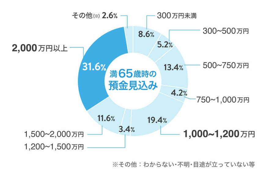 同調査による、みんなの「満65歳時の預金額見込み」は以下の通り。