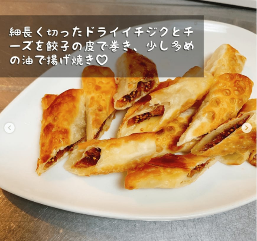 こちらも美味!余った餃子の皮×ドライイチジク×チーズ
