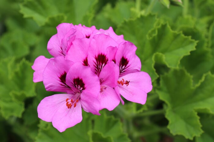 スパイス系のシナモンの香りがするゼラニウム。ピンクのはっきりとした色合いの花を咲かせるのが特徴です。