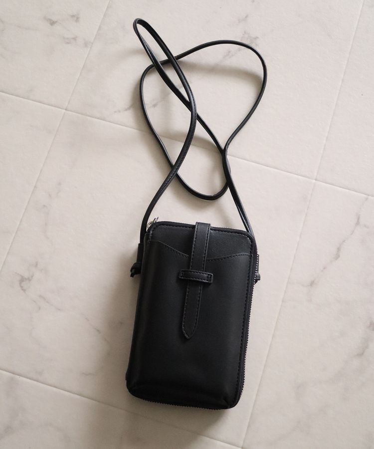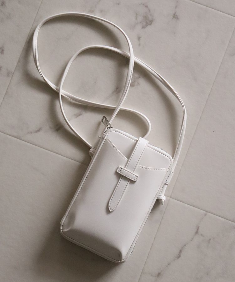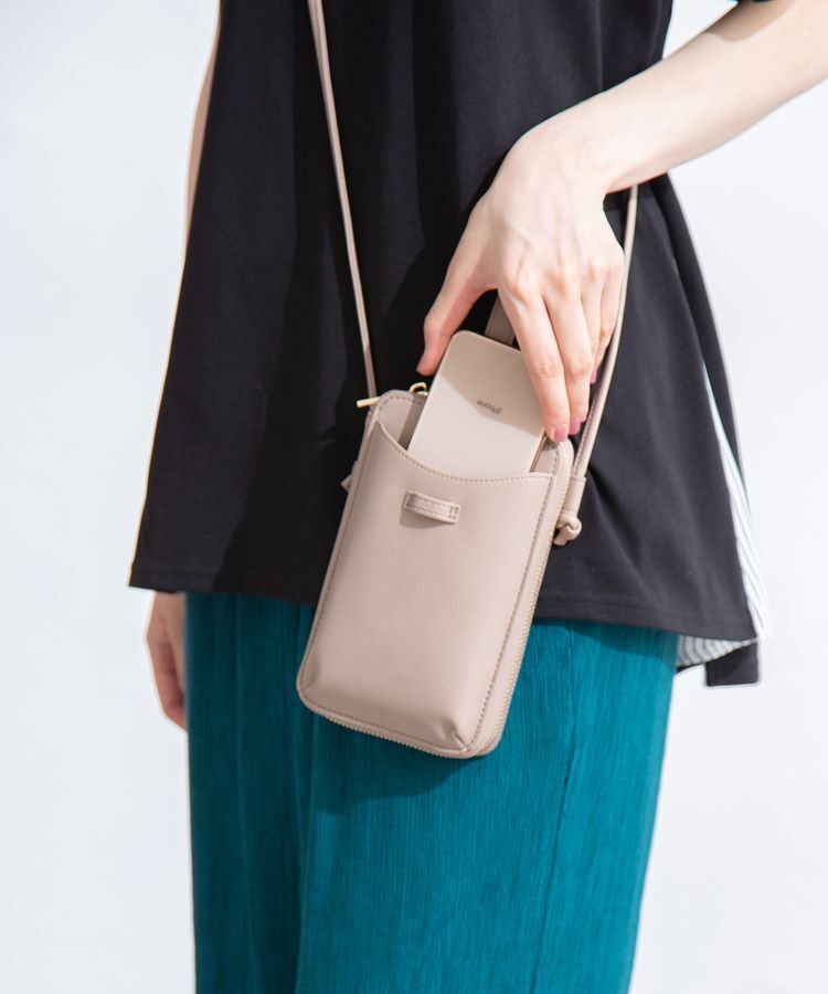 ちょっとした外出や仕事に、必要最低限の物だけ持ち歩けるショルダーバッグです。表部分のポケットにスマホを収納することができます。
