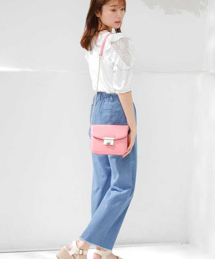 ゴールドの金具とフェイクレザーの表地素材が高級感を出しています。コーデに花を添えてくれるだけでなく、改まった場所にも使えるでしょう。