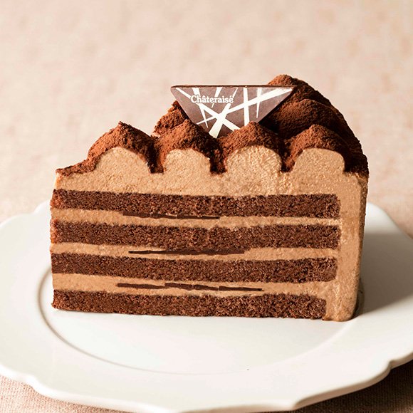チョコクリームに、ベルギー産のクーベルチュールミルクチョコレートとスイートチョコレートを使用。シャトレーゼのロゴの入ったパリパリの板チョコがおしゃれなアクセントになっています。