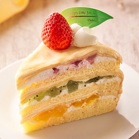 みずみずしく甘酸っぱいフルーツをふんだんに使った、クレープ皮でサンドしたカラフルなケーキです。赤いイチゴに、黄色のイチゴ、緑のキウイフルーツというように、元気なカラーが散りばめられた各層に、ホイップクリームとしっとりしたクレープの皮もサンド。ぜいたくな時間を堪能できますよ。SNSでも自分へのご褒美に選んでいる方が続出です。