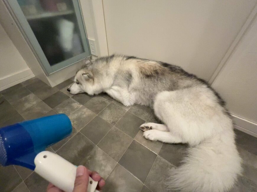 シャンプーとドライヤーに悟りを開いたハスキー犬🐺