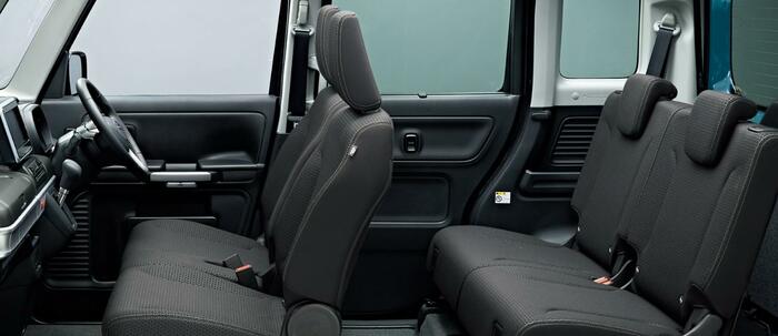 内装も三菱 eKスペースクロスは、質感を重視したファブリックや合皮シートなどを採用することで一般的な乗用車として、スズキ スペーシアギアは汚れに強い防汚仕様の荷室フロアや撥水加工を施したシートを採用するなど、川遊びやマリンスポーツ、スノーボードといったアウトドアアクティビティを楽しみたい人を重視しています。