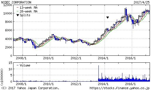 2017年4月25日、電子部品メーカー大手の日本電産(6594)が2017年3月期決算を発表しました。実績は売上高が5期連続で増収・増益となり、過去最高を更新。また、営業利益、税前利益、当期利益も4期連続の増益となり、過去最高を更新しています。ただし、ほぼ会社予想通りだったため、特段のサプライズはありませんでした。