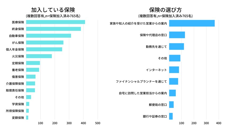 また、保険の選び方については、「家族や知人の紹介を受けた営業からの案内」が圧倒的に多い結果となりました。