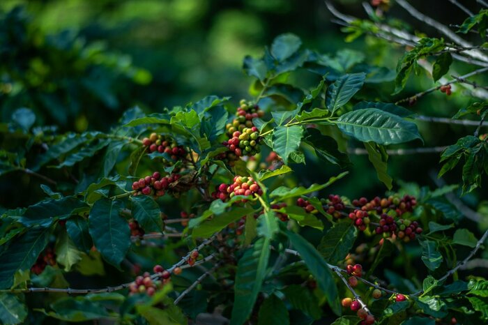 常緑で光沢の葉が美しいコーヒーの木は大きめのサイズも出回っています。個性的な観葉植物を飾りたい人にもオススメ。