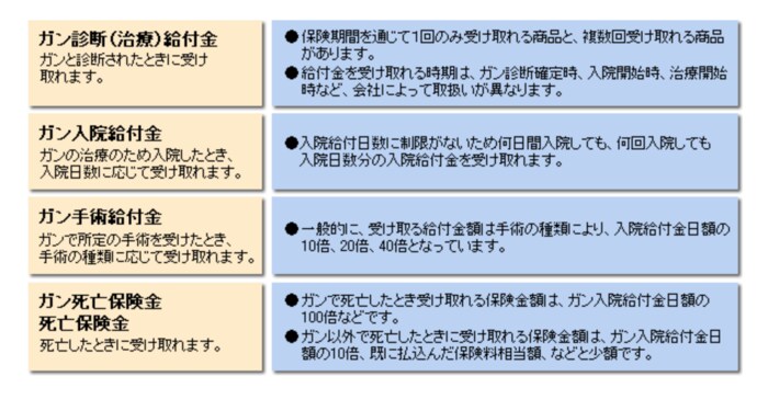 がん保険とは、がんと診断された時や入院、手術、通院の際などに給付金が受け取れる保険です。