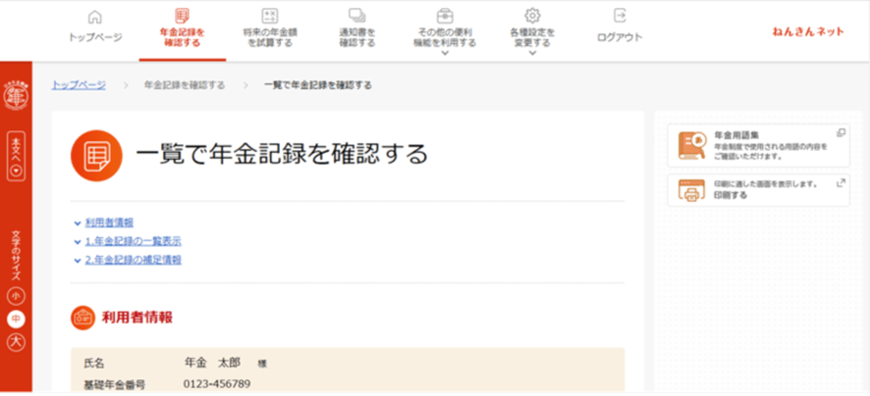 - 連携手続が完了すると「ねんきんネット」のページが表示