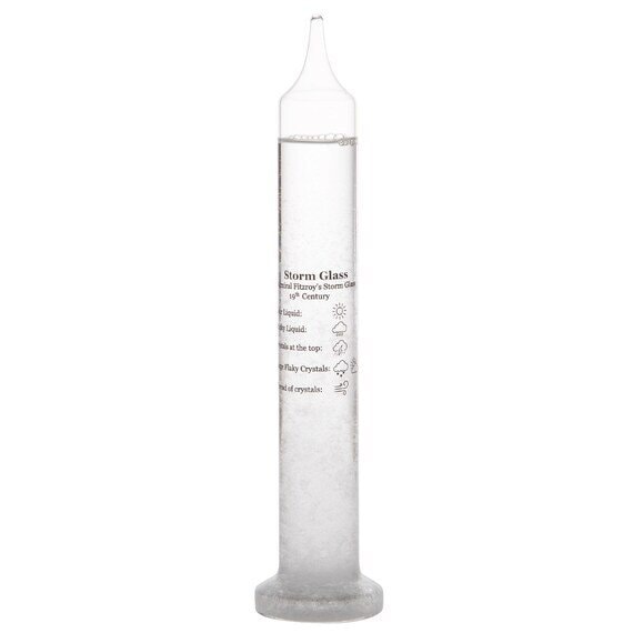 細長いガリレオ温度計とデザインが似ている「ストームグラス」です。高さは24cmなので、こちらのほうが一回りほどコンパクトなサイズ感になっています。