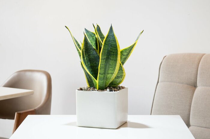 サンセベリアは肉厚の尖った葉がスッと縦に伸びたスタイリッシュな姿の観葉植物。