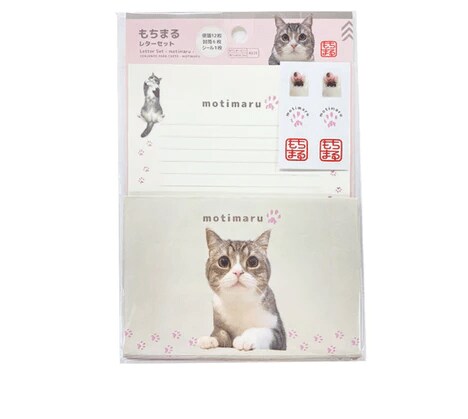もちまるがデザインされたレターセットです。便箋12枚、封筒6枚、シール1枚入り。
