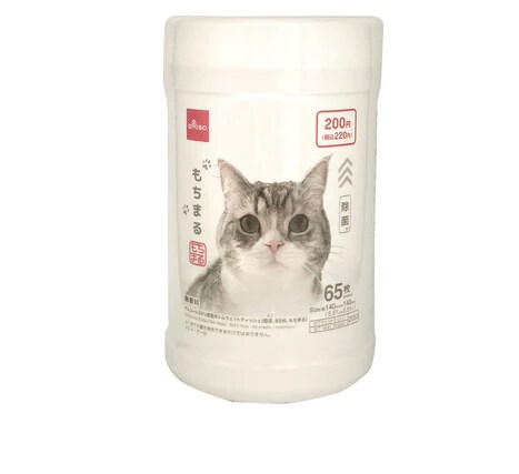 【アルコール30%除菌ボトルウェットティッシュ(極厚、65枚、もちまる)】220円(税込)