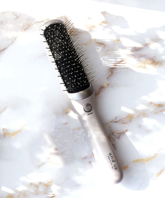 見た目は普通のブラシですが、スイッチを入れれば毎分約6000回の音波振動と約1000ガウスの強力磁気で、絡まりやすい髪の毛もスルンとくし通りの良いヘアに。