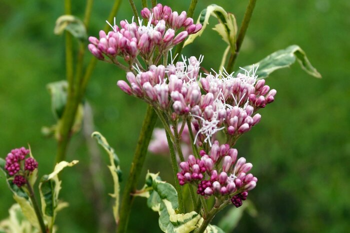 秋の七草のひとつのフジバカマ。ホワイトや薄いピンク、パープルの小花が集まって咲く姿が大人っぽくオシャレです。草丈が高くなるので、切り取って室内に飾るのもいいですね。