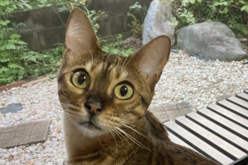1匹の方は、まんまるに目を見開き、飼い主さんの方を見ています。