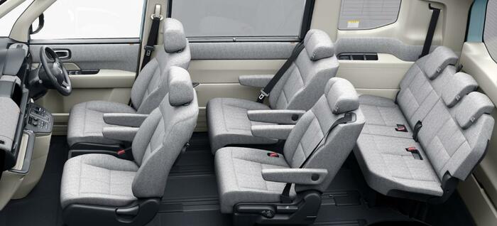 シートは、ソファーのような厚みのあるで形状にしただけでなく、メイン材をサイドまで張り込むことでシートの厚みを強調。他社の同クラスのミニバンと比較してリビング感を演出しました。