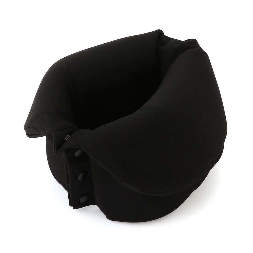 しっかり首を支えてくれるネックピローです。カラーは画像のブラックに加えて、ネイビーもあります。