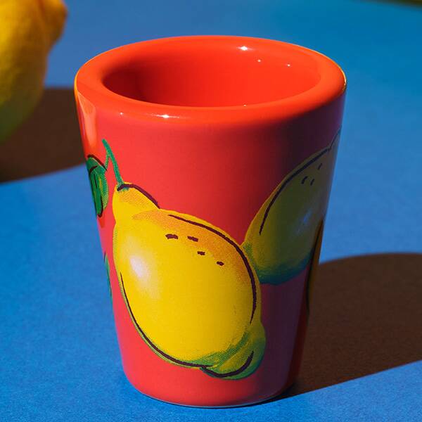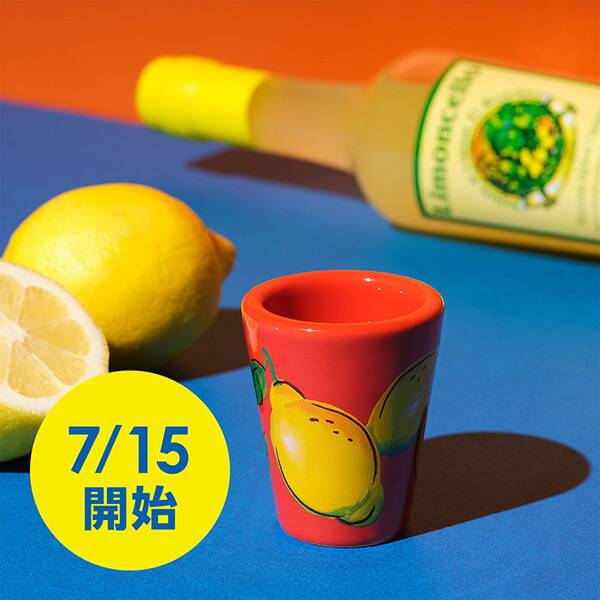 レモン柄陶器のショットグラスは、今年はブラッドオレンジカラー。毎年プレゼントキャンペーンで登場するこのショットグラスは、毎年色が違うので、毎年揃えていくファンも。
