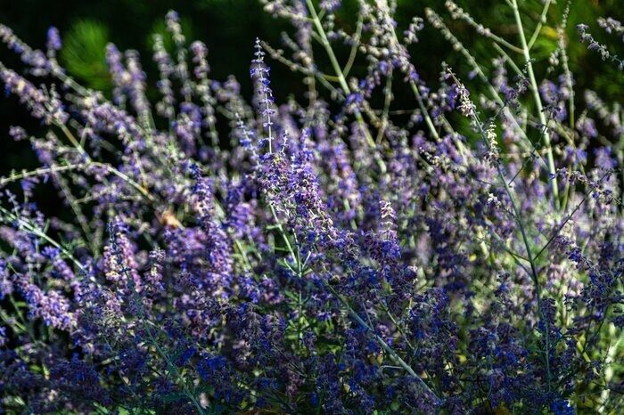 別名「サマーラベンダー」と呼ばれるロシアンセージ。シルバーグリーンの葉や青紫の花が、夏の花壇をクールな印象に。花はベルベットのような質感があり、フンワリとした優しい雰囲気です。