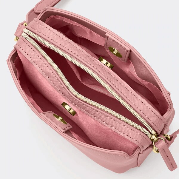コンパクトなショルダーバッグながら、画像のようにポケットがたくさんついていますので、収納力は十分です。ポケットには、便利なマグネットホック付きとなっています。