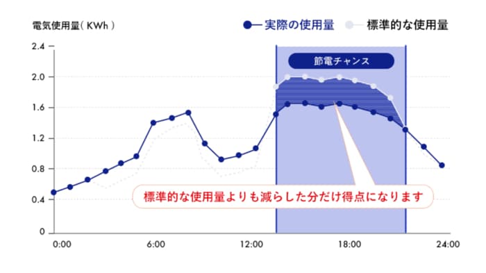 1キロワットアワー節電すると5節電ポイントが受け取れますし、1キロワットアワーに届かなくても、変化量に応じてポイントを受け取ることが可能です。