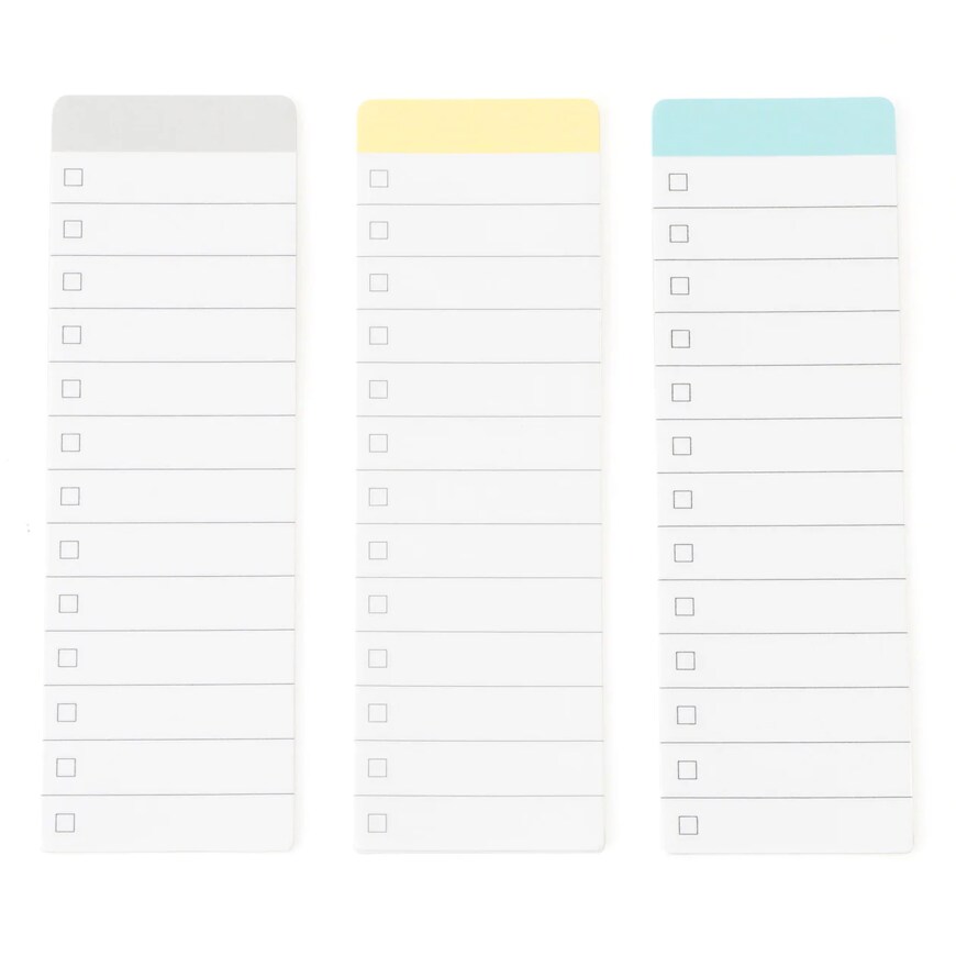 チェックリスト付箋です。3色セットで、各10枚入っています。価格は、消費税込みで250円です。