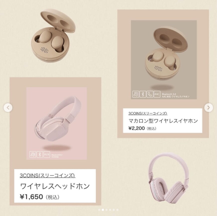 3COINSで購入できるワイヤレスヘッドホンとマカロン型ワイヤレスイヤホン