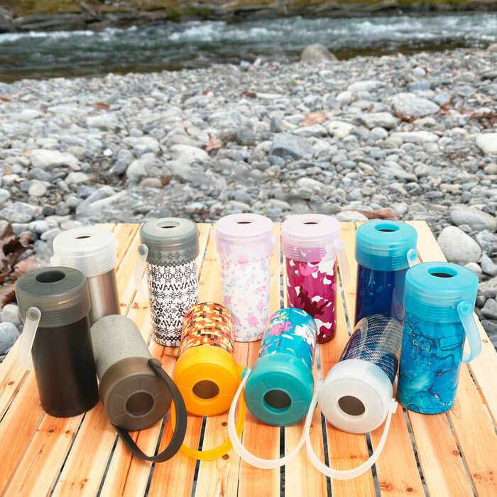 真空構造なので、そのまま収納するだけで500mlのペットボトル飲料の温度をキープできて、着脱可能な持ち手が付きました。水筒などのように中身を移し替える必要もないので、キャンプ場などの野外では特に心強い存在です。