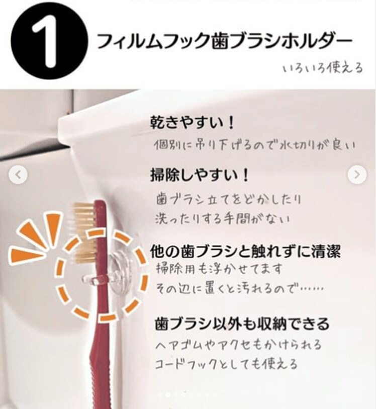 セリアで浮かせる収納1. フィルムフック歯ブラシホルダー