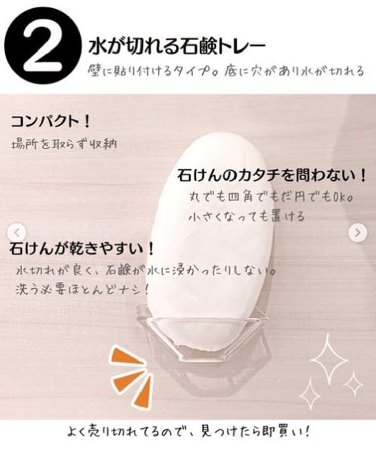 セリアで浮かせる収納2. 水が切れる石鹸トレー