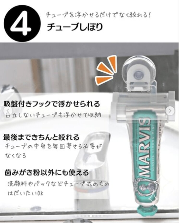 セリアで浮かせる収納4. チューブしぼり