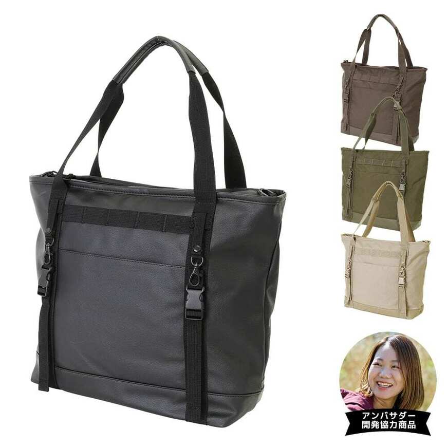 スタイリッシュで、どんなシーンにも合うトートバッグです。画像の通り、カラーは、ブラック・カーキ・ブラウン・オフホワイトの4色があります。