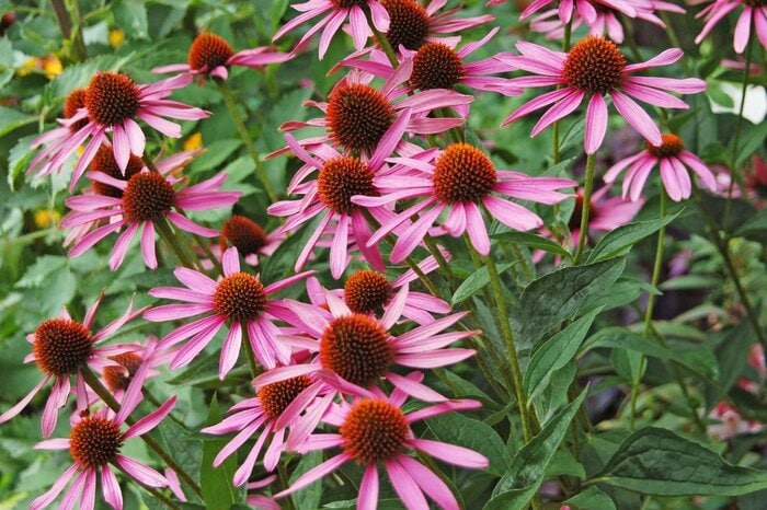 花が少なくなる夏の花壇を華やかに彩るエキナセア。盛り上がった中心部を囲むように、細長い花弁が咲き広がります。