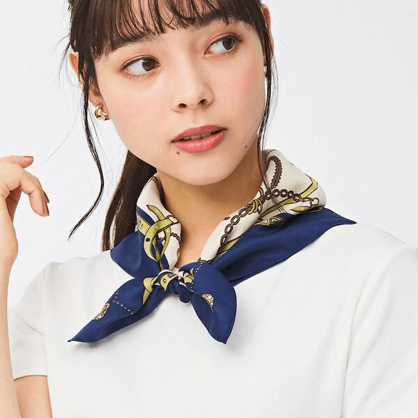上品な柄が、こなれた雰囲気を漂わせてくれます。首に巻いたり、肩にかけたり、カチューシャ風にしたりと、さまざまな使い道がありそうです。