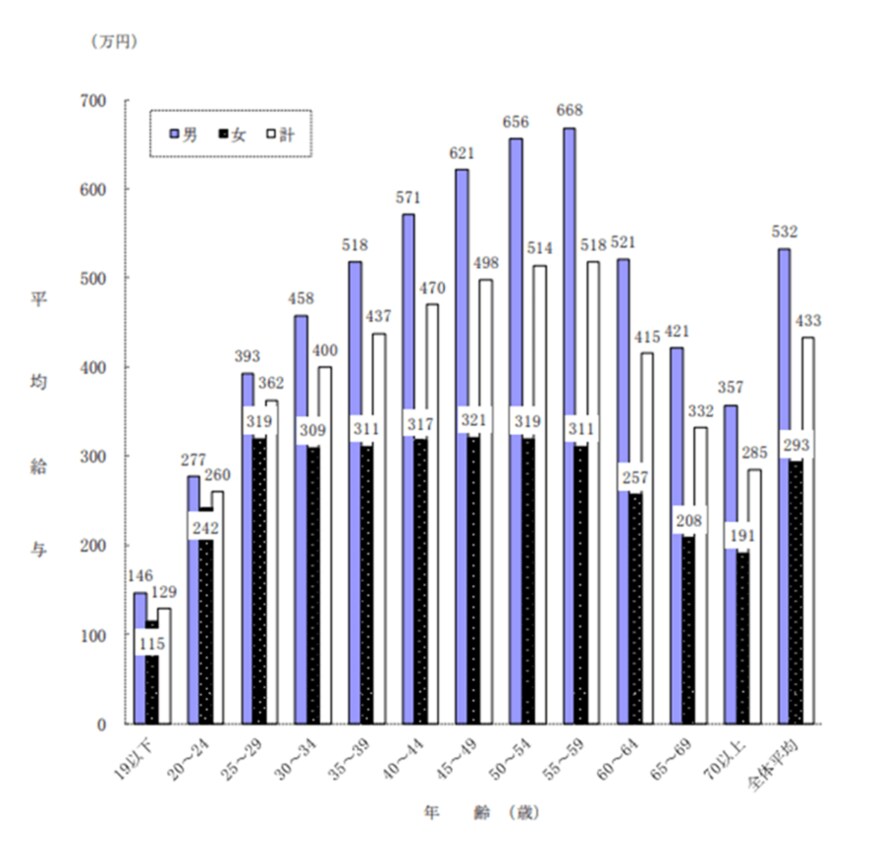 国税庁の「令和2年(2020年)分 民間給与実態統計調査」によると、日本人の平均給与は433万円ですが、年代別にみると平均は異なります。