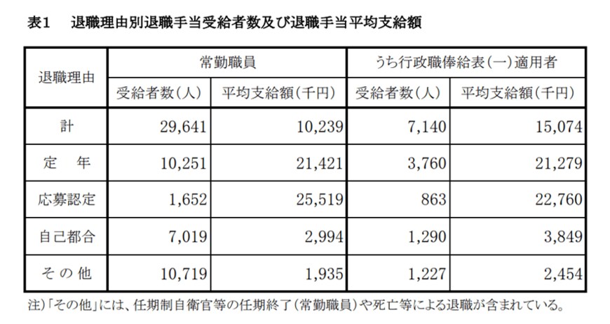 国家公務員の場合、定年まで勤めることで退職金が2000万円以上を超えるようです。その他、応募認定(早期退職募集)は高くなっていますね。
