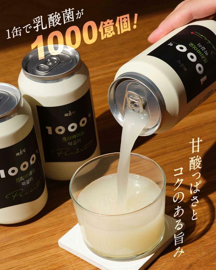 スッキリ甘酸っぱい!韓国の伝統的なお酒「麹醇堂 1000億プリバイオマッコリ」。1缶の中に1000億個の乳酸菌が入った、甘酸っぱくコクのある味わいが楽しめます。
