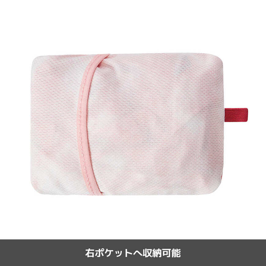 こちらのTシャツは、右ポケットに収納できる「ポケッタブル仕様」となっています。画像のようにかなりコンパクトに収納することもできます。