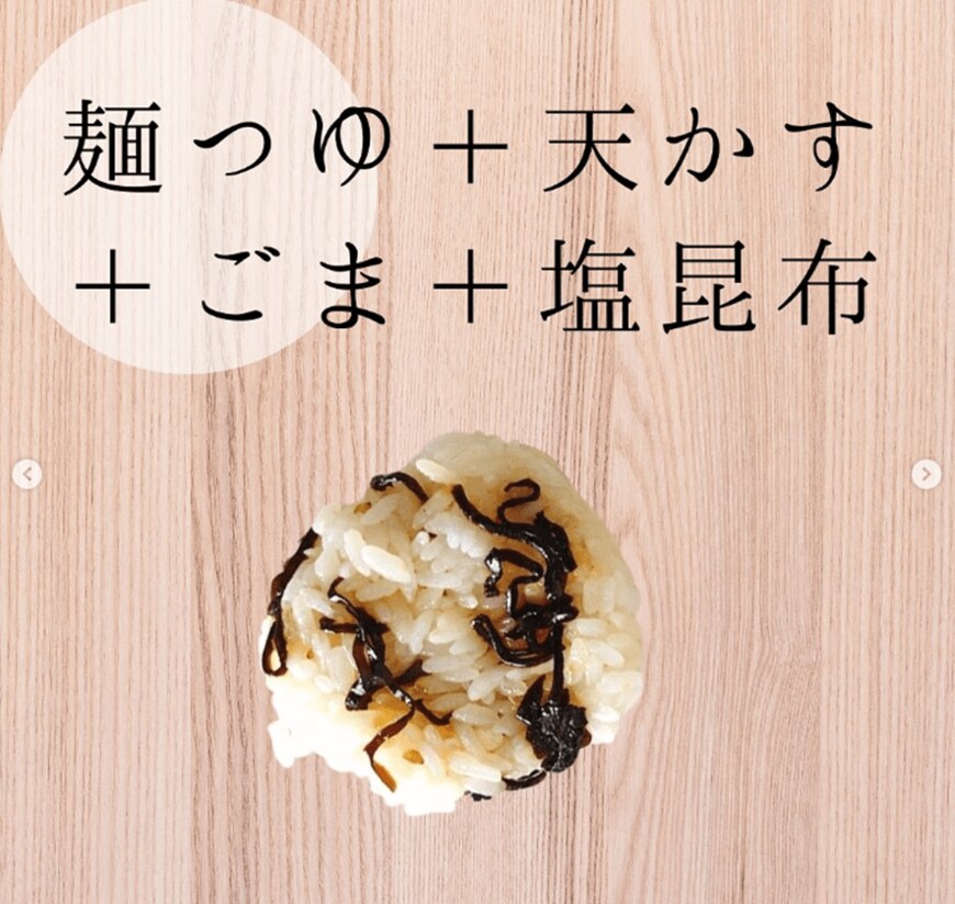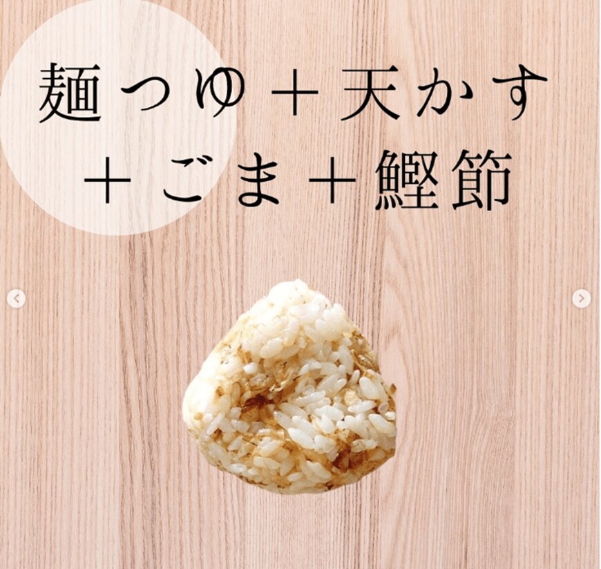 麺つゆで作るおにぎりの1つ目は、天かすがアクセントとなりそうなこちらのレシピ。ごまと鰹節だけでもいい香りがしてきそうですが、天かすを入れると一気に格上げされますね。