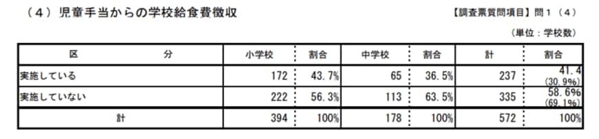 これらの児童手当から学校給食費を徴収する自治体も存在しており、実際にその割合は41.4%であることがわかりました。