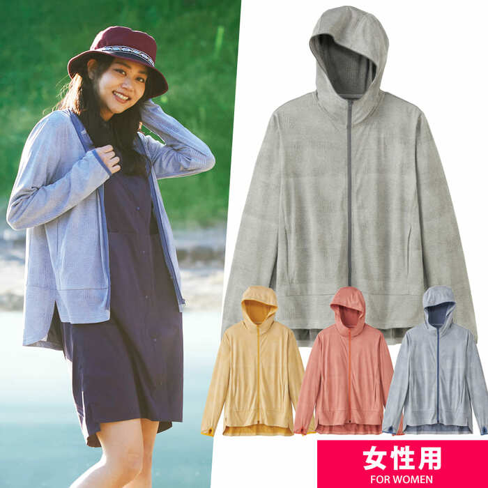 虫が寄り付きにくい加工のメッシュパーカー。UVカット付きなので、日差しの強い夏の日焼け対策にもおすすめです。使わないときは背面ポケットに収納可能。コンパクトで持ち運びにも便利です。