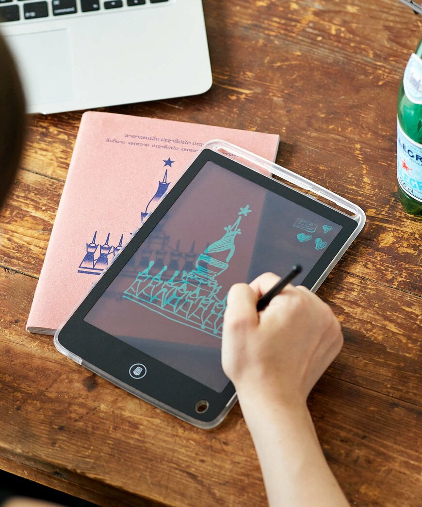 【スリコ】のスケルトン電子メモパッドは、絵や字の練習になる!