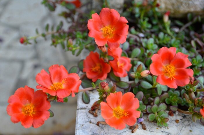 ポーチュラカは鮮やかな花色とプックリした肉厚の葉が魅力。ほふくしながら横に広がり、グランドカバーにもオススメです。