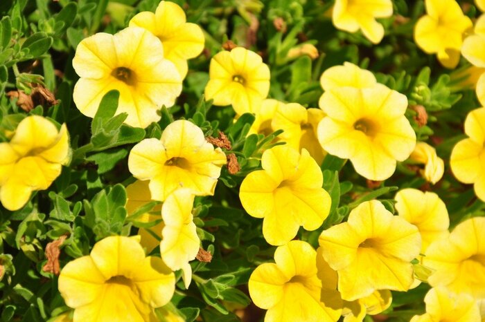 カリブラコアはペチュニアを小型にしたような花が可憐。花つきがよく、満開になると株全体を覆うようになって見応えがあります。