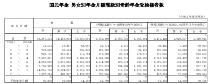 公的年金のベースとなる国民年金。自営業者や専業主婦などは国民年金のみの受給となるため、参考までに国民年金の受給者数も1万円レンジで確認しましょう。