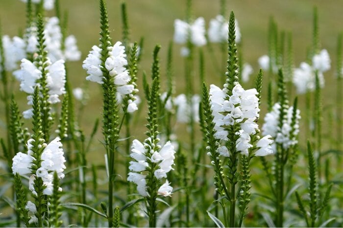フィソステギアは「ハナトラノオ」という別名でもよく知られる花。夏から秋にかけて長い間咲き続けます。茎や花穂が四角形で、四方に整然と咲く花が特徴的。