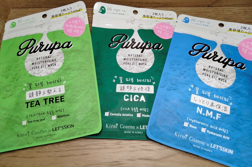 こちらがセリアで購入できる韓国製のフェイスパックです。画像のように、3種類あります。