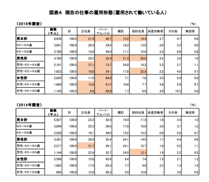 続いて、60歳代の就業者の雇用形態について、同資料を使って確認しましょう。